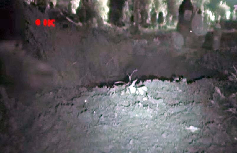 Kepulan asap berwarna putih kelihatan pada kubur digali yang dapat dirakamkan daripada kamera infra merah.
