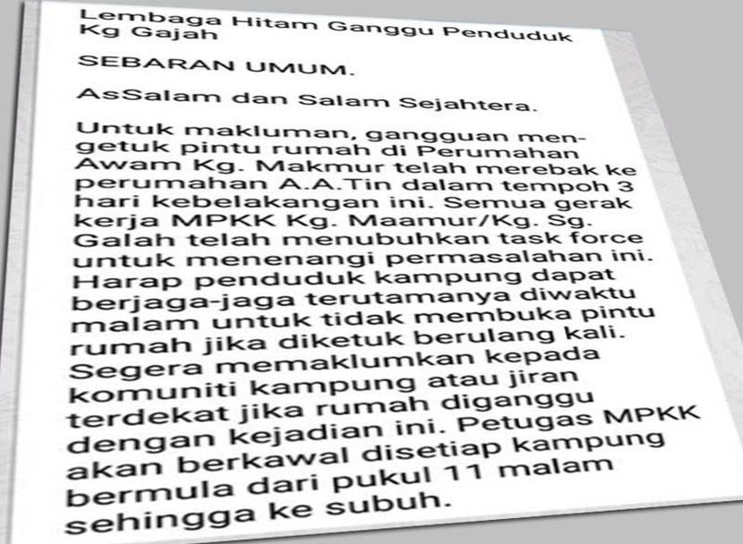 Ia disebabkan terdapat satu perkara ganjil di kampung mereka yang tidak pernah berlaku sebelum ini apabila pintu rumah diketuk tengah malam.