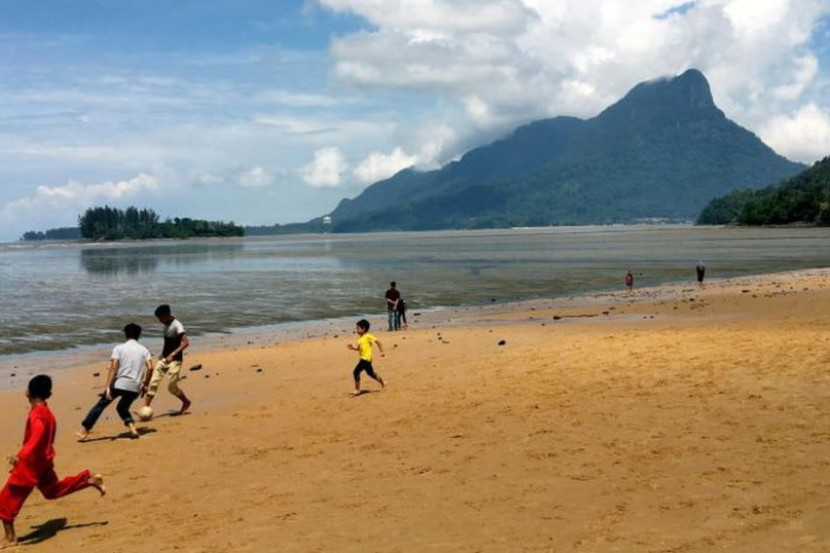Kawasan pantai yang berlatar belakangkan Gunung Santubong.