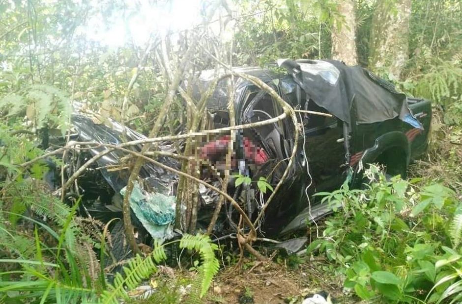 Beginilah keadaan kenderaan dipandu Allahyarham Muhammad Amir Abdullah yang terhumban ke dalam gaung di Sungai Ular. Jenazah Allahyarham ditemukan oleh orang awam selepas lima hari kehilangannya. Foto ini sekadar hiasan dari Facebook Info Kemalangan dan Bencana Malaysia.