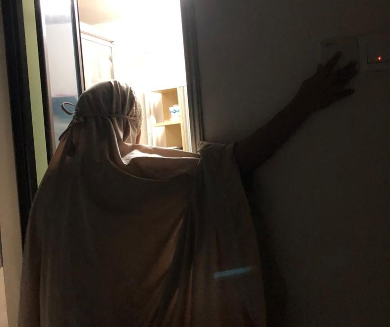 Mereka menyapa saya dan mengatakan sudah mengantuk. Saya masuk ke tandas seketika. Suara jemaah paling berusia di dalam bilik itu mengingatkan saya agar tidak menutup pintu bilik air dan biarkan lampu terbuka. Sebenarnya saya tidak selesa jika pintu bilik air dibuka tetapi akur dengan permintaan yang lain.