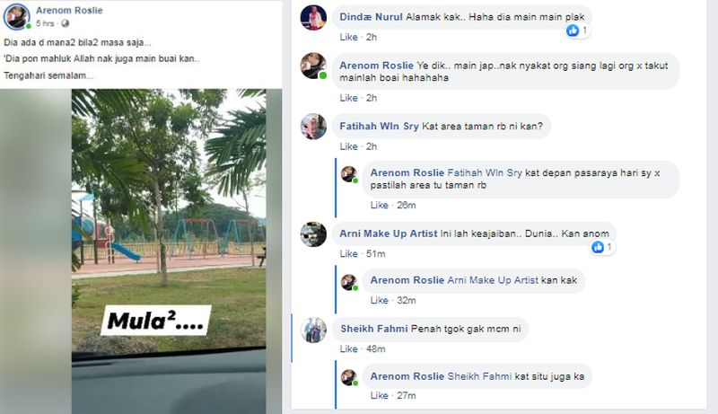 “KETIKA itu tiada orang di taman permainan, malah tiada langsung angin atau tanda-tanda mahu hujan,” demikian cerita seorang wanita, Anom Rosli mengenai video yang dikongsikannya di laman sosial Facebook, Ahad lalu.