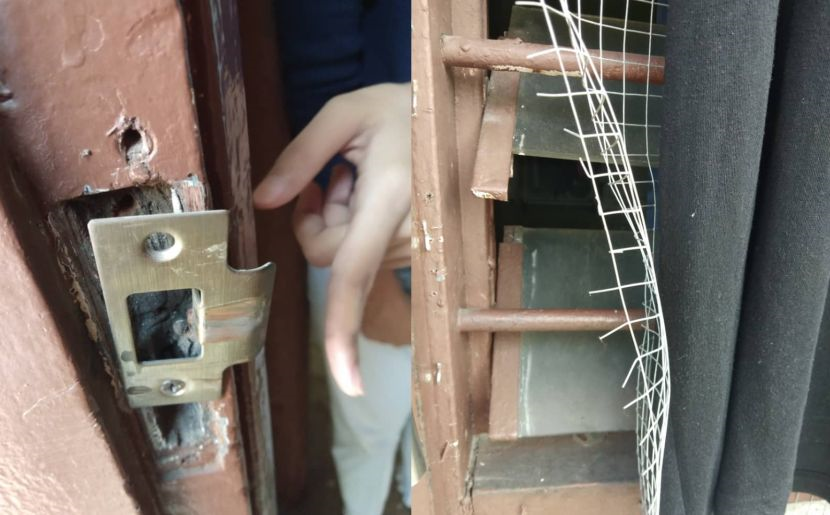 Keadaan tingkap serta pintu rumah yang telah diumpil oleh perompak.
