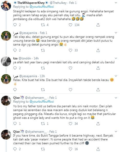 "Bila lalu je kawasan tu memang seram. Saya pernah sekali mengada-ngada nak try lalu Bukit Putus memang badan rasa seram sejuk.