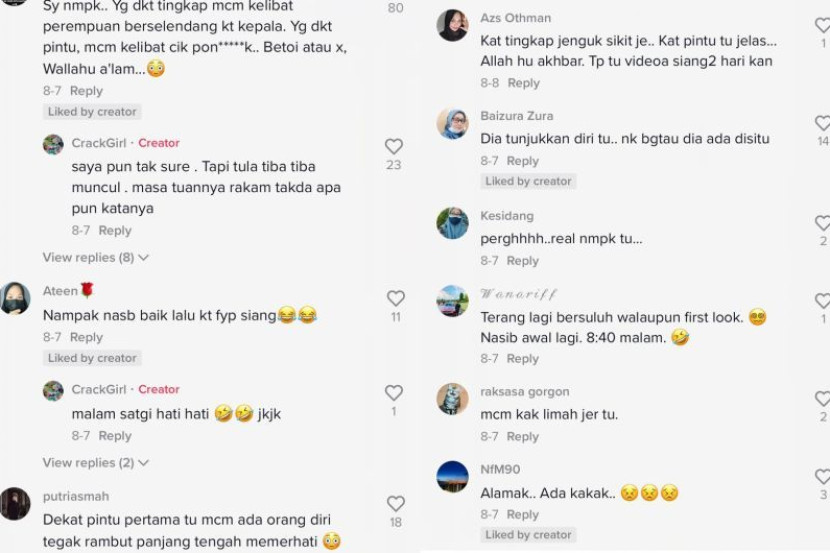 "Tak kurang juga ada yang DM siap minta alamat sebab nak pergi siasat. Tapi ada orang yang tengok TikTok saya dan kebetulan tinggal berhampiran kampung kami di Batu 8, Tanah Merah dah pergi situ sejak video viral. Dekat komen, dia beritahu memang seram.
