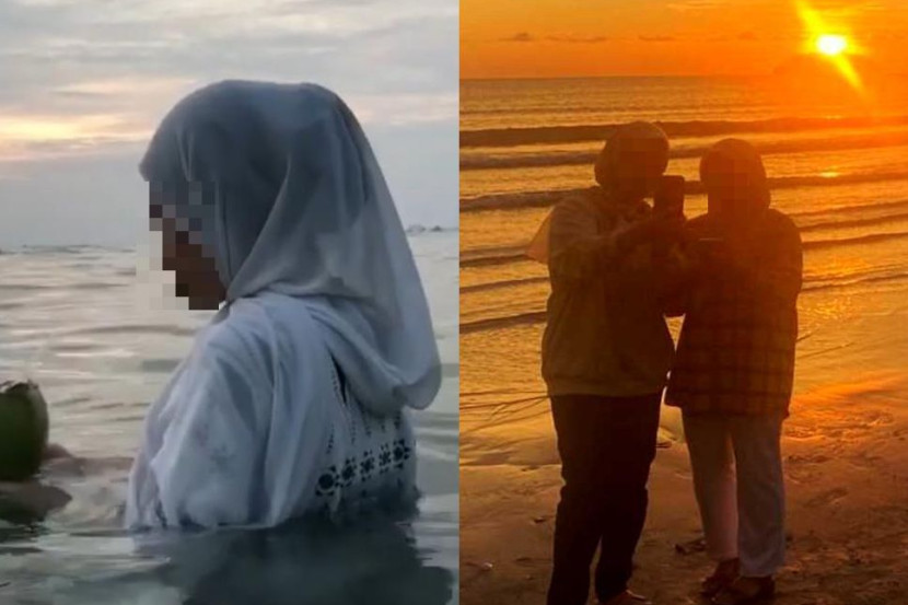 Dengan penuh teruja, Nisa masuk ke dalam air dan meminta Syikin merakam video dia berenang ketika matahari terbenam.