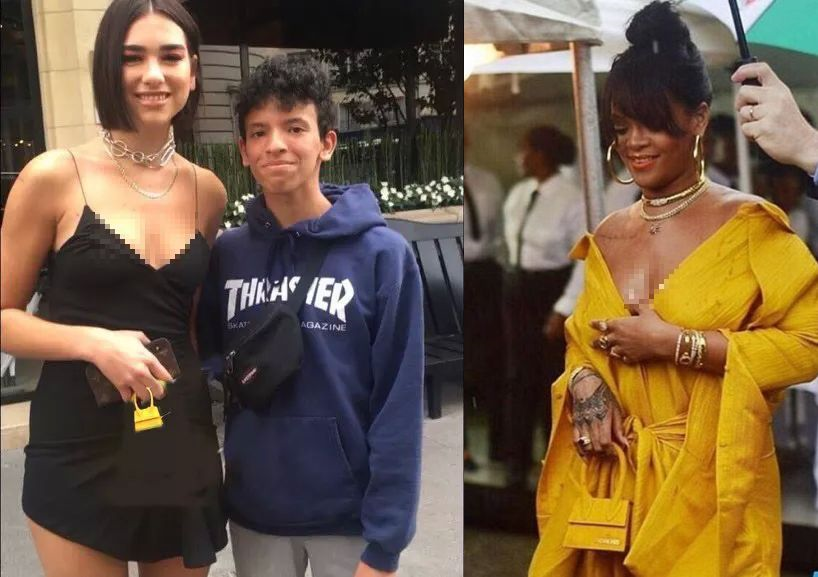Dua Lipa (kiri) dan Rihanna (kanan) tampil bergaya dengan beg mini berwarna kuning.