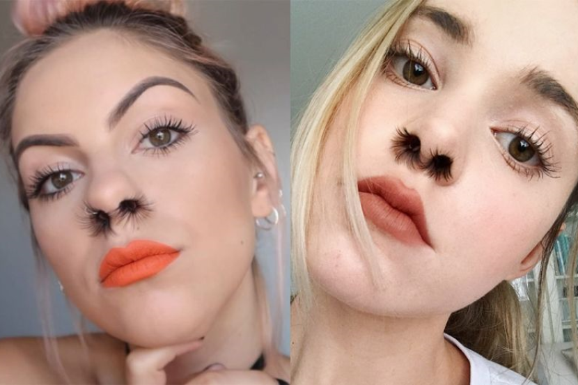 Gret mengggunakan bulu mata palsu yang dilekatkan dalam lubang hidung dan membiarkan bulunya terkeluar dan dalam sekelip mata ia menjadi ikutan di laman sosial itu.