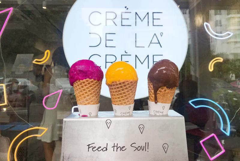 Creme De La Creme menawarkan pelbagai perasa ais krim yang menggunakan bahan semulajadi dan tanpa pengawet, perasa tiruan atau pewarna.
