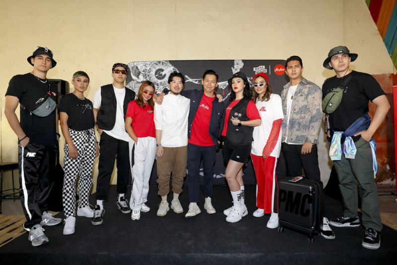 Pengasas bersama Pestle & Mortar Clothing, Hugh Koh (lima dari kiri) dan ketua penjenamaan kumpulan AirAsia, Rudy Khaw (lima dari kanan) bersama model yang menggayakan koleksi terbaharu PMC x AirAsia: S.E.A. Pride.