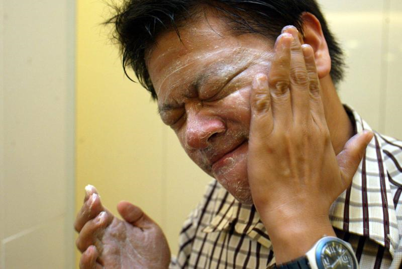 Bukannya dengan menekan dan menggosok kulit anda, tetapi anda perlu gunakan hujung jari anda perlahan-lahan ke sekitar wajah anda.