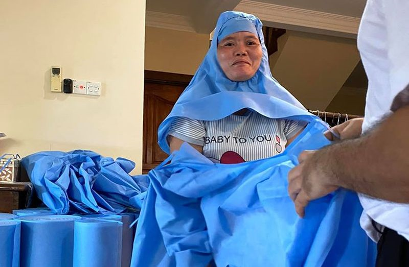 "Sebenarnya saya tidak menjahit keseluruhan PPE. Saya cuma membuat bahagian luar sahaja iaitu jubah luar, topi, tudung kepala serta dua jenis penutup kasut pelbagai saiz dari S hingga XL.