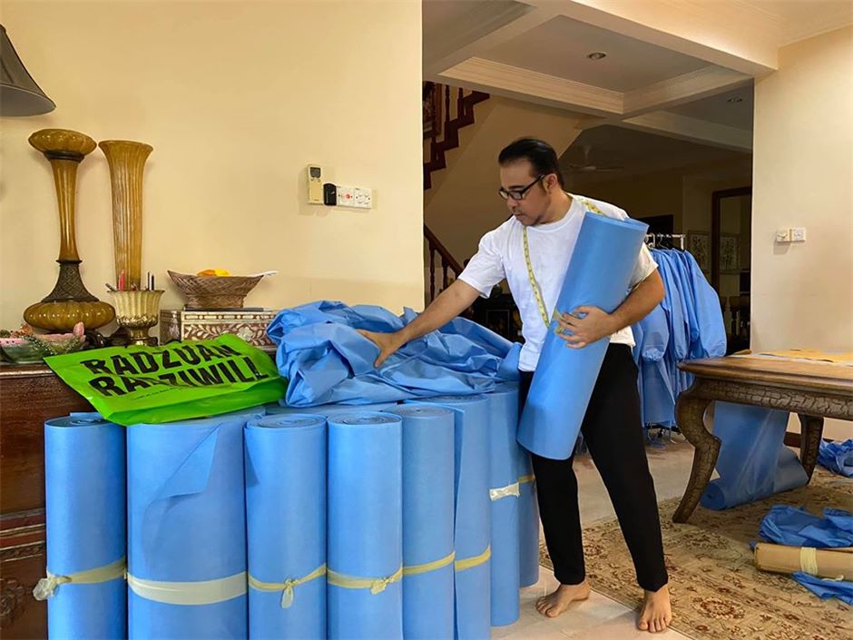 Radzuan juga memberitahu rakannya di Hospital Serdang memberi contoh pakaian PPE serta membekalkan material non-woven untuk dijahit menjadi PPE.