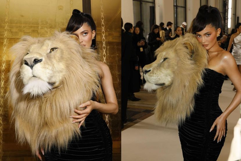 Turut mencuri tumpuan tentunya Kylie Jenner yang menggayakan busana kepala singa ketika duduk di barisan hadapan pertunjukan berkenaan.