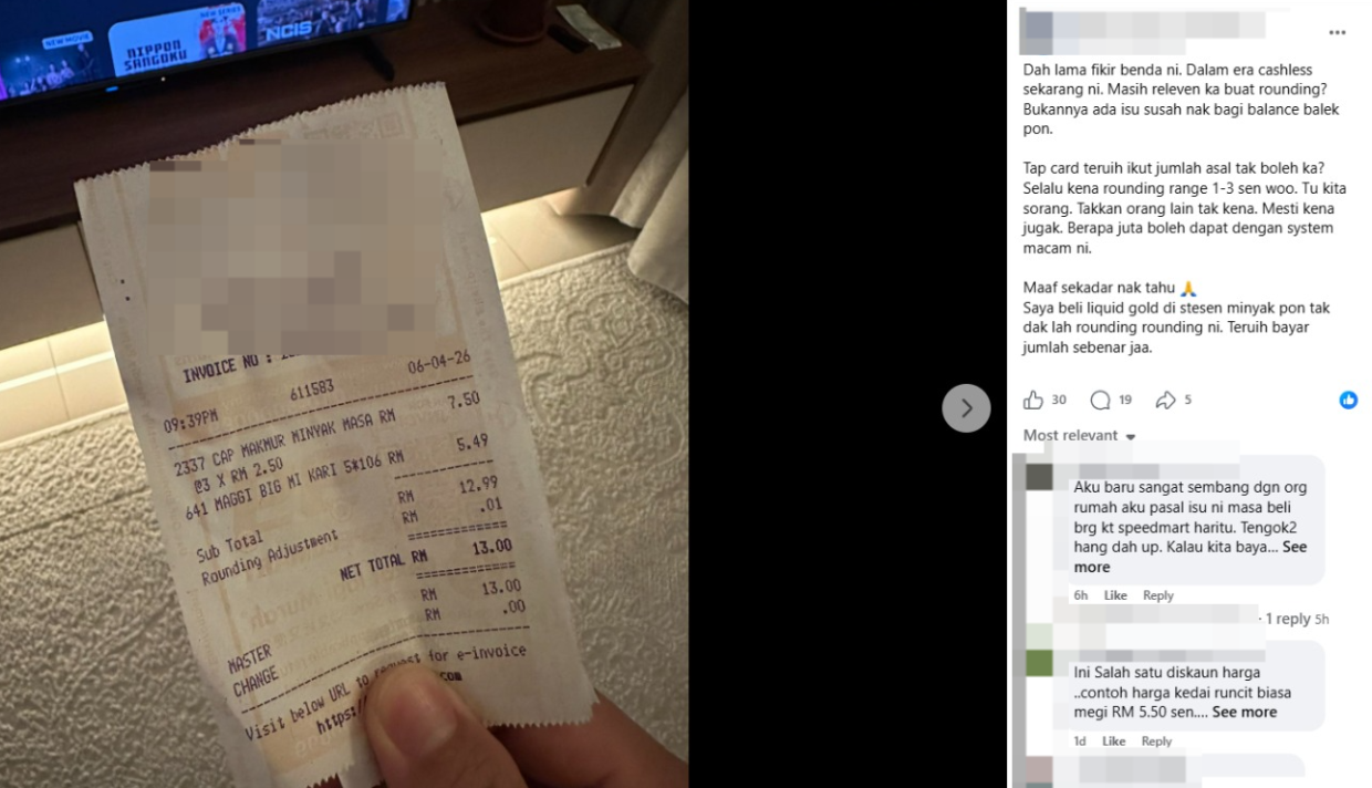 SISTEM penggenapan harga kembali menjadi bualan hangat apabila seorang pengguna media sosial meluahkan rasa kurang senang selepas terpaksa membayar lebih satu sen bagi pembelian barangan dapur di sebuah kedai serbaneka.Menurut perkongsiannya, jumlah asal pembelian barang dapur bagi satu pek mi segera serta tiga paket minyak masak adalah RM12.99 namun dia perlu membayar RM13 gara-gara sistem penggenapan. Pengguna berkenaan turut mempersoalkan keperluan sistem itu dengan menyatakan bahawa kaedah bayaran secara tanpa tunai (cashless) perlu dikecualikan daripada sistem penggenapan. "Dalam era cashless sekarang ni, masih relevan ke buat rounding (penggenapan)? Bukannya ada isu susah nak bagi baki semula pun. Tap kad bank terus bayar ikut jumlah asal, tak boleh ke?"Selalu kena rounding sekitar satu hingga tiga sen. Tu kalau seorang, tak mungkin orang lain tak kena? Mesti kena juga. Berapa juta (peniaga) boleh dapat dengan sistem macam ni. Maaf sekadar nak tahu," ujarnya.Situasi tersebut mencetuskan persoalan dalam kalangan pengguna lain yang turut merasakan hal yang sama ketika membeli di premis lain."Sepatutnya sistem rounding diguna pakai untuk pembayaran secara tunai sahaja. Bayaran menggunakan kad kredit atau imbas kod QR tak perlu," kata netizen.Tangkap layar hantaran asal dikongsikan seorang pengguna berkenaan di media sosial.Perkongsian itu sekali gus membuka perbincangan lebih luas mengenai sama ada mekanisme penggenapan masih relevan ketika kebanyakan transaksi kini dilakukan secara digital.Untuk rekod, Bank Negara Malaysia (BNM) sebelum ini memperkenalkan mekanisme penggenapan kepada lima sen terdekat bagi pembayaran di kaunter yang dilaksanakan sepenuhnya sejak 1 April 2008.Menerusi penjelasan BNM, penggenapan hanya dibuat pada jumlah keseluruhan bil dan bukan bagi setiap item. Jumlah yang berakhir dengan 1, 2, 6 dan 7 sen akan dibundarkan ke bawah, manakala jumlah berakhir dengan 3, 4, 8 dan 9 sen pula akan dibundarkan ke atas kepada gandaan lima sen terdekat.Pelaksanaan mekanisme itu bertujuan memudahkan urus niaga tunai selain mengurangkan keperluan penggunaan syiling satu sen, walaupun syiling tersebut masih boleh digunakan sebagai wang sah.Pada September tahun lalu, Menteri Kewangan II, Datuk Seri Amir Hamzah Azizan dilaporkan berkata kerajaan ketika ini belum bercadang untuk mengkaji semula pelaksanaan mekanisme tersebut.Menurut Amir, sistem sedia ada masih berfungsi dengan baik dan tidak mengganggu ekosistem perniagaan dalam negara, meskipun terdapat pandangan agar ia dinilai semula susulan peralihan kepada pembayaran secara dalam talian.Secara keseluruhannya, mekanisme penggenapan diperkenalkan bagi tujuan memudahkan transaksi tunai, namun persoalan mengenai kesesuaiannya dalam era digital menjadi perdebatan dalam kalangan pengguna.