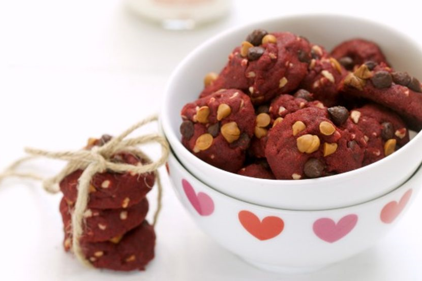 Selain kek, biskut Red Velvet juga banyak mendapat permintaan ramai dengan warnanya yang sungguh menarik perhatian ramai tanpa mengira usia. Tentunya tambah menyelerakan jika biskut itu dicampur dengan coklat chip.