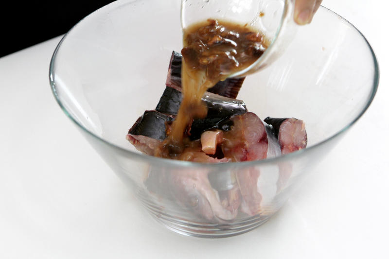 Sementara itu, basuh ikan patin dan lumurkan dengan asam jawa dan biarkan perapan itu selama lima minit.