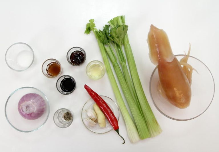 Antara bahan untuk penyediaan salad sotong.