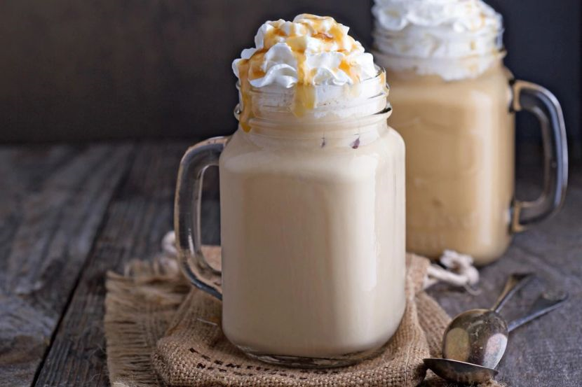 1. Campurkan susu, kopi, sos karamel, gula dan ais ke dalam mesin pengisar dan kisarkan sehingga ia sebati.